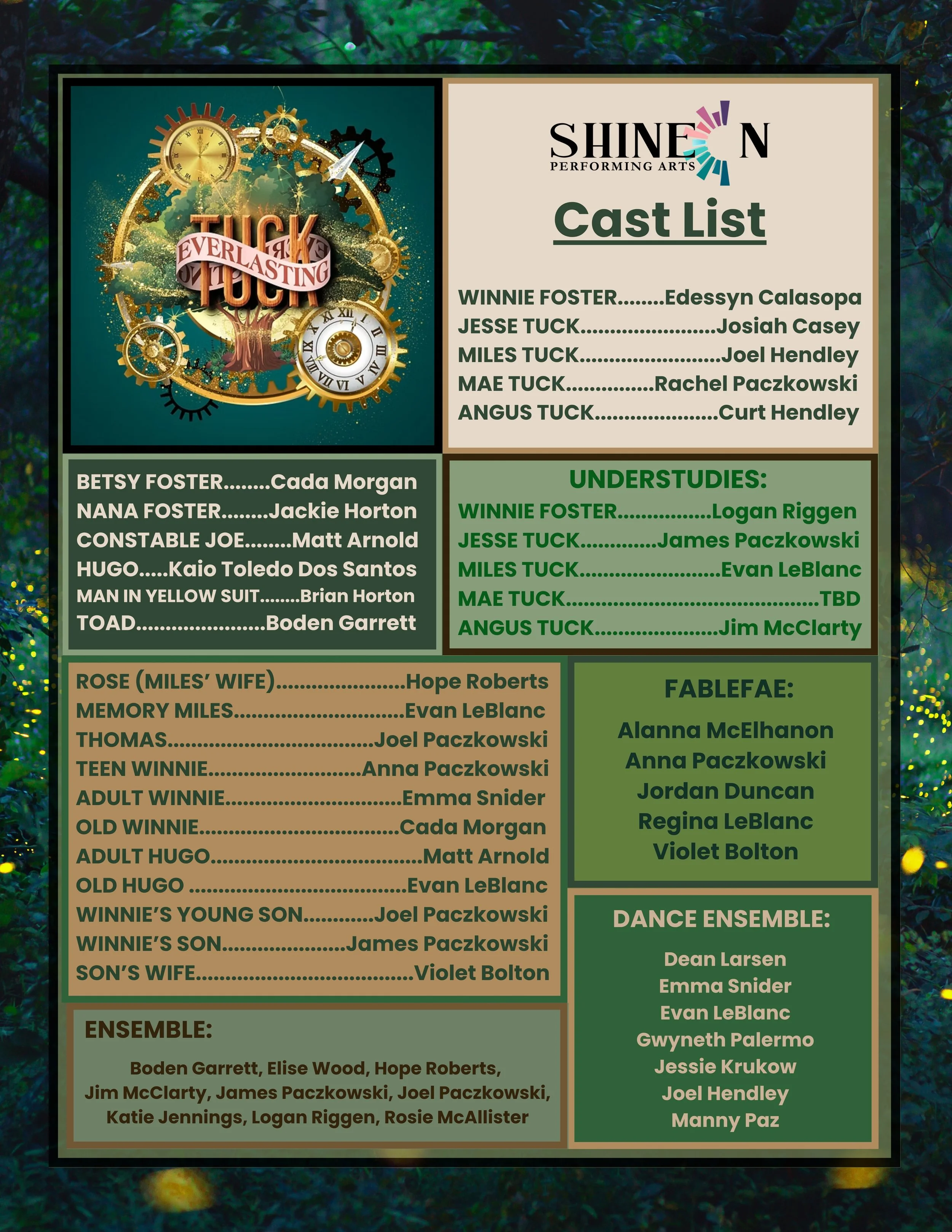 Students that are interested in taking part in our Summer 2025 Production of TUCK EVERLASTING - must read thru and sign off on the entire process before auditioning.